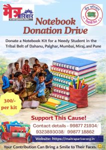 Maitra Parivar Trust has been implementing several social welfare projects like Vidyarthi Mitra, Aarogyamitra, Shravanmitra, Kaushalyamitra along with assisting senior citizens and Helping people in need during emergencies.